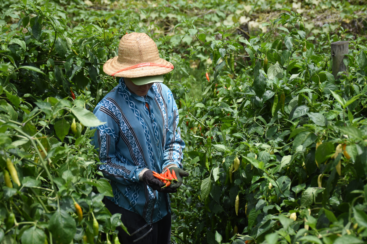 Mulheres trabalhando na plantação de pimentas, município de Santa Maria de Jetibá - Projeto Caminhos do Campo